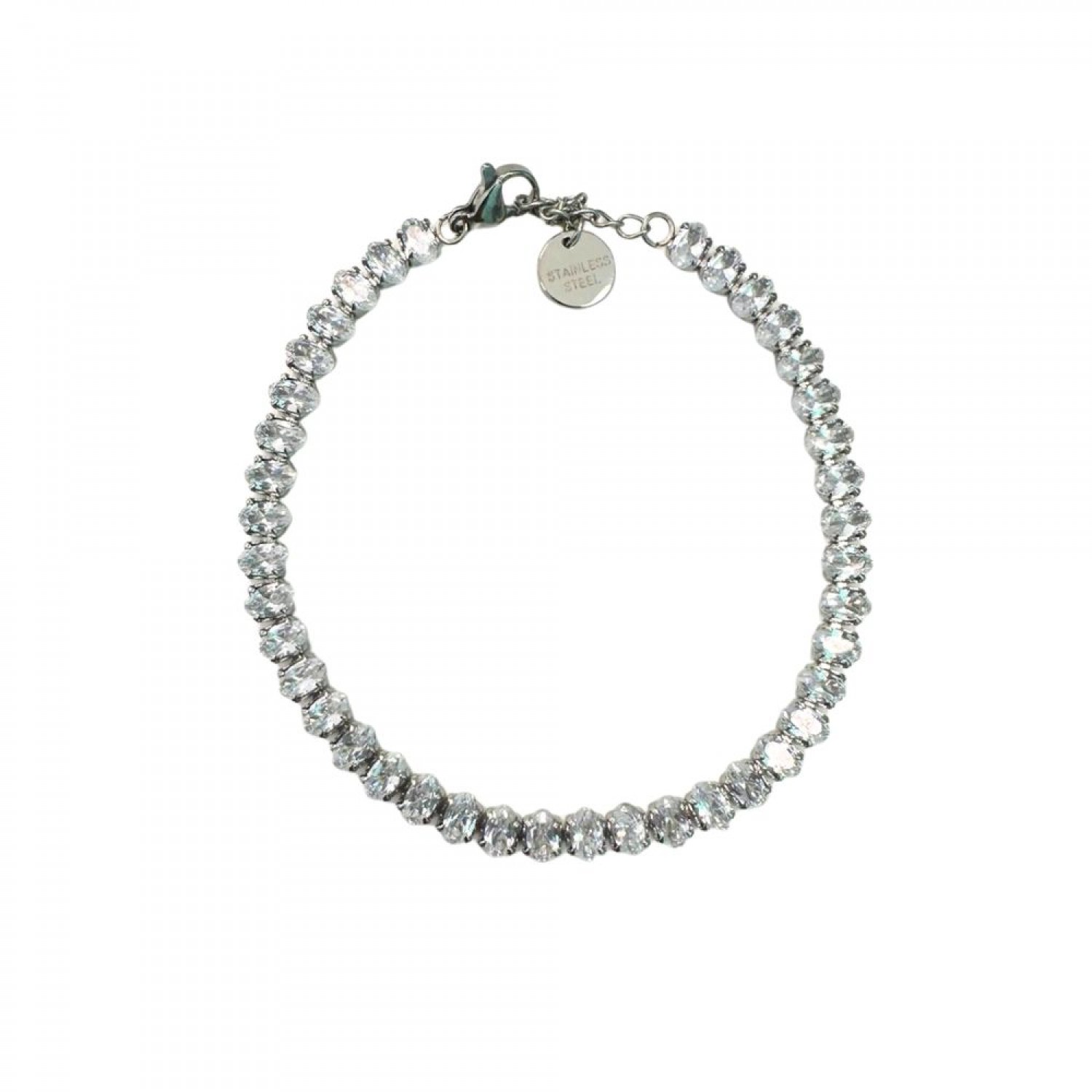 Λαμπερό βραχιόλι από ατσάλι, με σειρά ζιρκόν που φωτίζουν κάθε εμφάνιση. Ιδανικό για elegant ή βραδι..