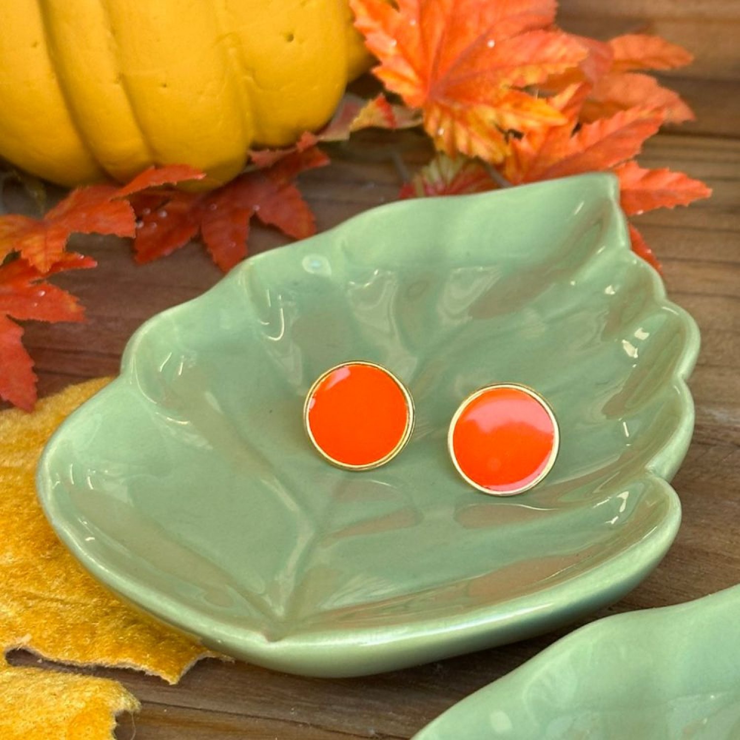 Καρφωτά Σκουλαρίκια σε στρογγυλό σχήμα με πορτοκαλί σμάλτο ιδανικό για τις φθινοπωρινές σου εμαφανίσεις.