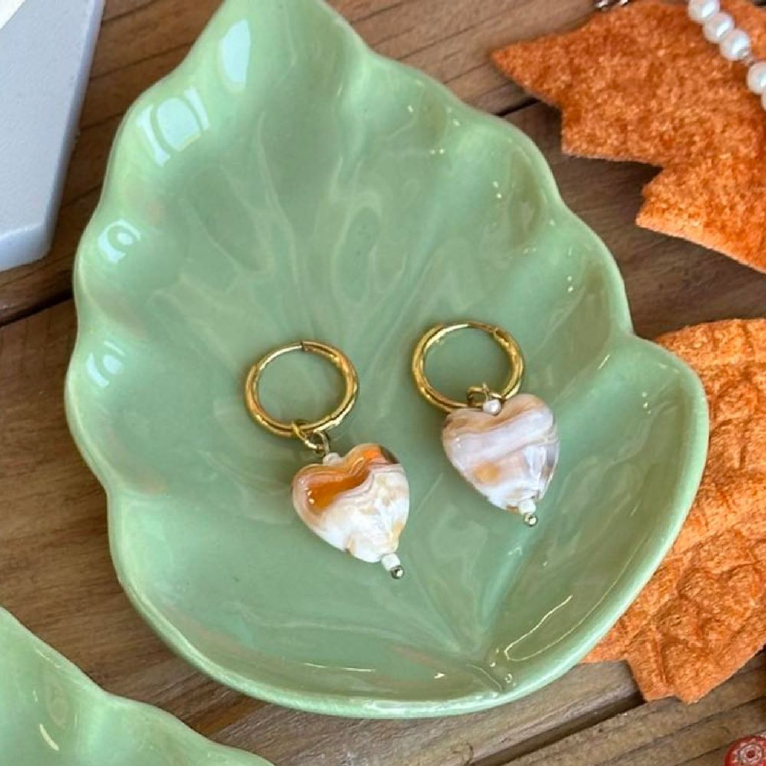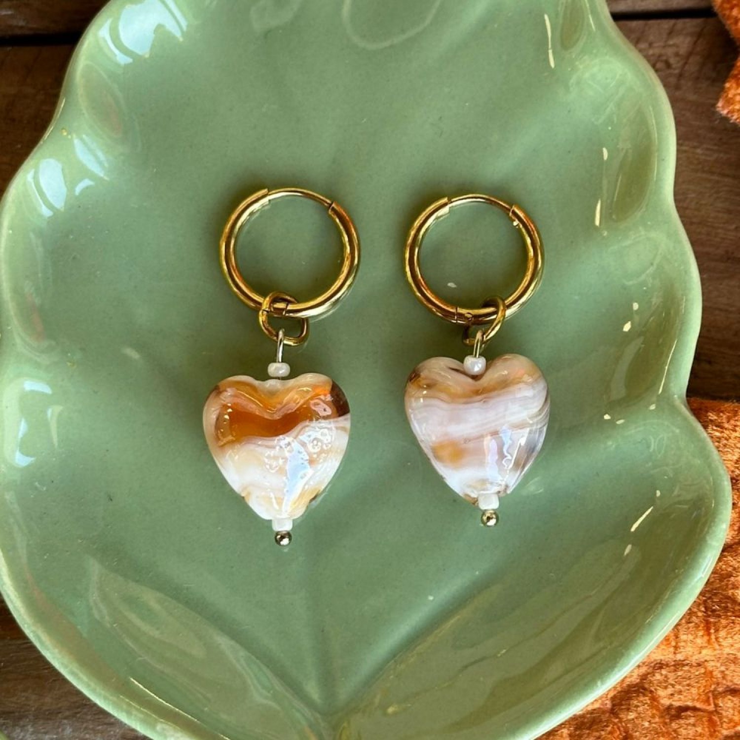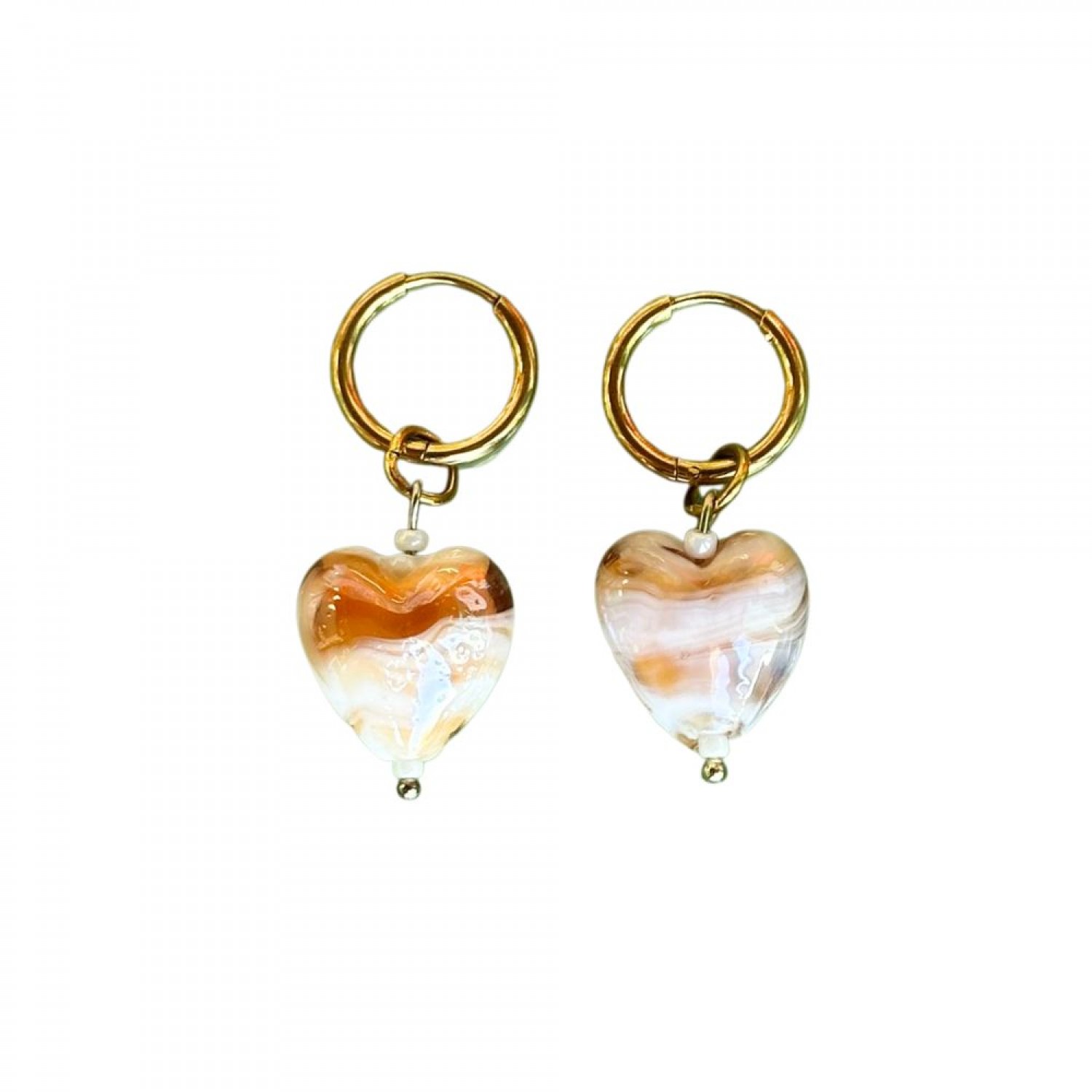Χειροποίητα Σκουλαρίκια με πέτρες Μουράνο σε σχήμα καρδιάς περασμένες σε κρικάκι